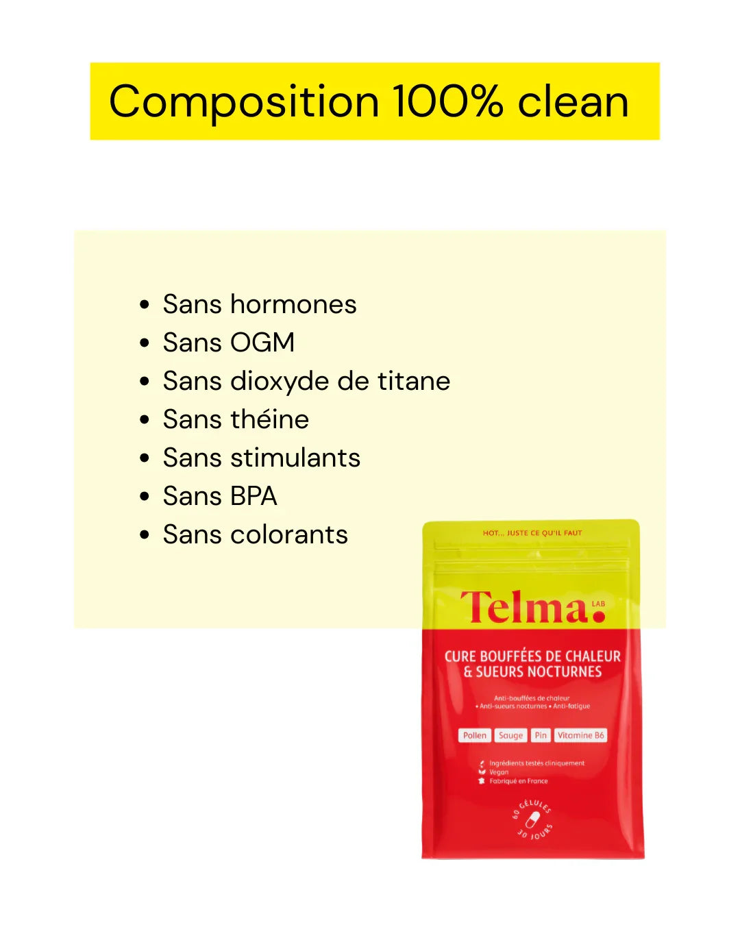 Nous avons travaillé la formulation de ces compléments alimentaires dédiés à soulager les symptômes de la ménopause et de la périménopause avec des docteurs en pharmacie, des sages-femmes et des professionnels de la nutrition.
