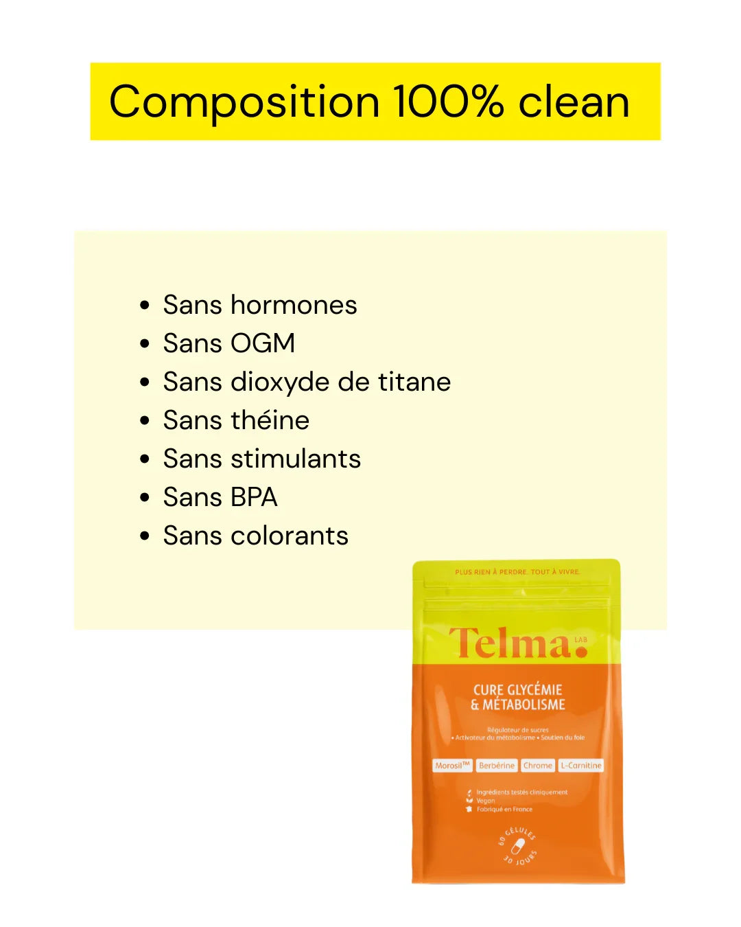 - Concentré de: Morosil™, Berbérine, Chrome, L-Carnitine.